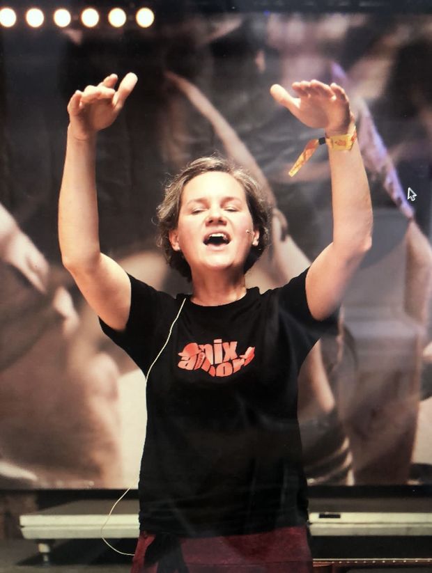 Singprofi Vroni Schweikl bringt mehrstimmige Lieder mit, die wir zusammen ausprobieren.
